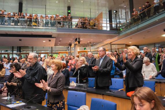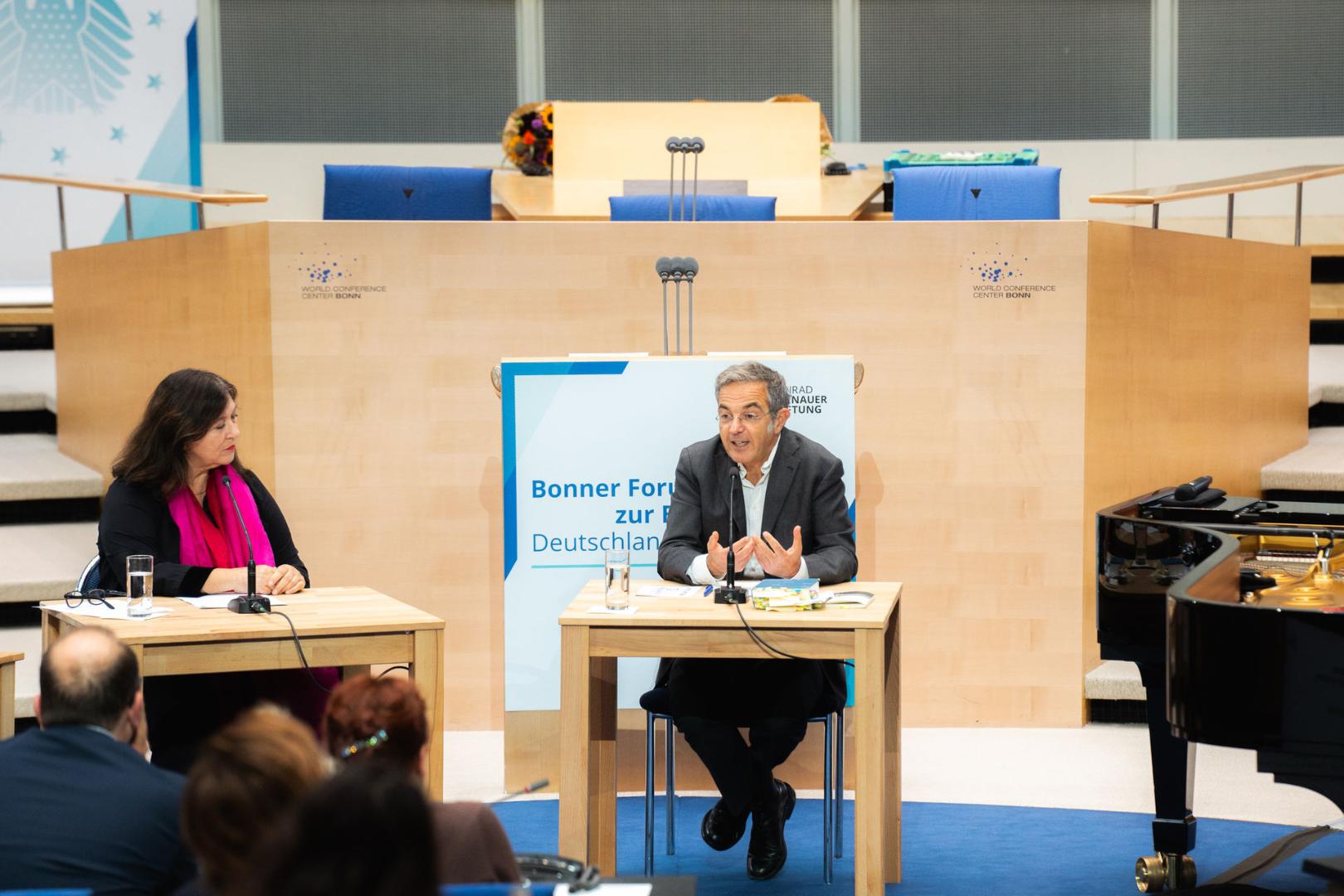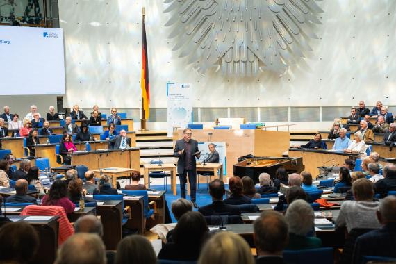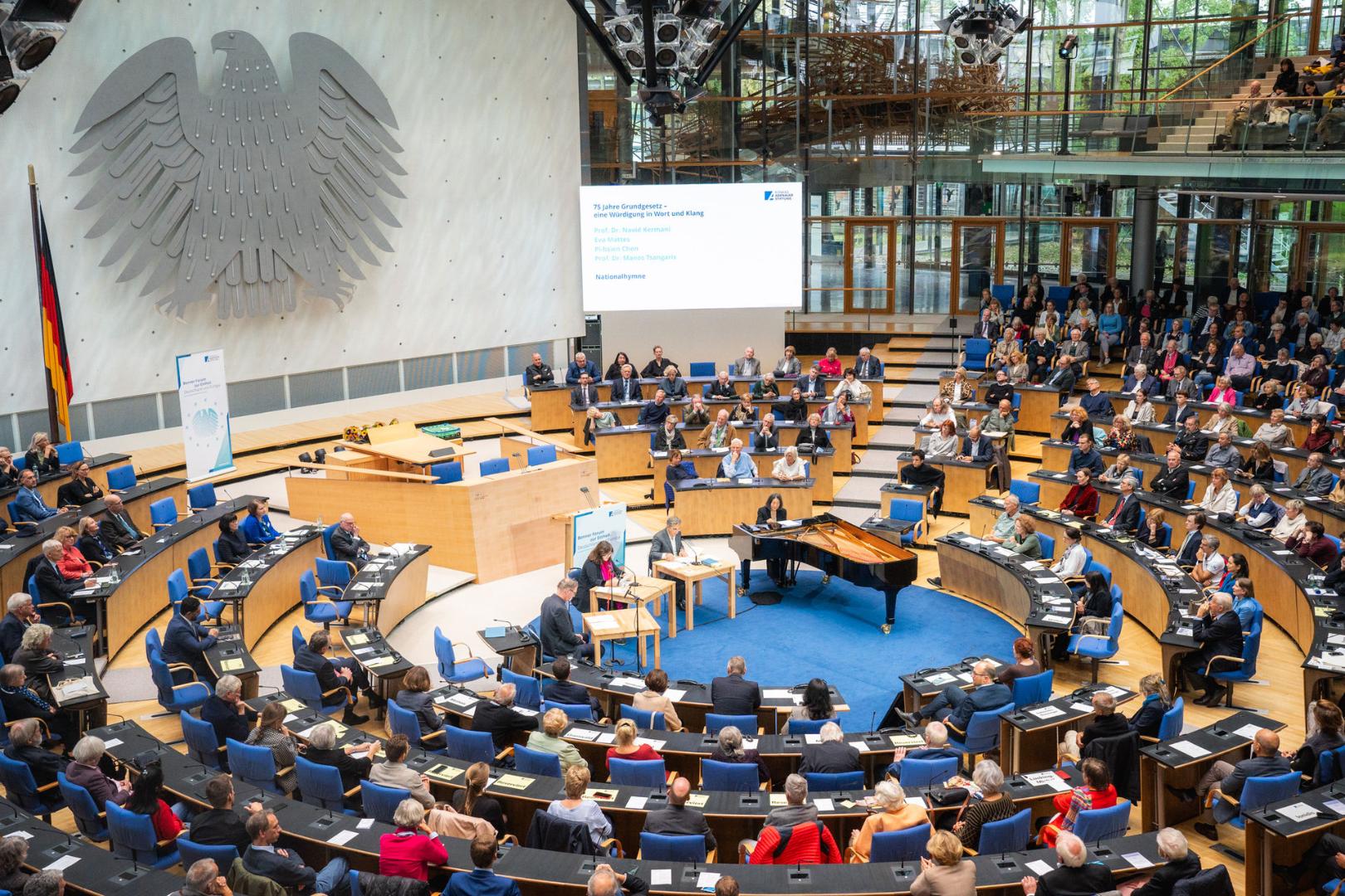 Kermani schloss den Nachmittag mit einem emphatischen „Danke, Deutschland!“ Danach konnte nur noch das Kaiserquartett von Haydn, die musikalische Grundlage der deutschen Nationalhymne, gemeinsam vom Saal gesungen, folgen.