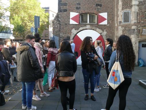 Unser ausdrücklicher Dank gilt dem EL-DE-Haus, das uns - bei laufendem Betrieb und abendlicher Ausstellungseröffnung - tatkräftig zur Seite stand. Auch für die gute Organisation der Gruppenführungen im Historischen Stadtmuseum durch die Ausstellung "Konrad der Große" sagen wir herzlichen Dank. Das Trio "um den Appellhofplatz herum" komplettierte das Verwaltungsgericht Köln, das uns die Räume für das Mittagessen zur Verfügung stellte. So trugen alle dazu bei, das die Räumlichkeiten gegeben waren, um den Jugendpolitiktag in Köln für die Schülerinnen und Schüler zu einem nachhaltigen und beeindruckenden Erlebnis zu machen.