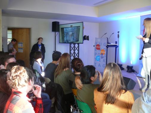 Danach kamen zwei Jung-Politiker auf die Bühne. Felix Spehl, Kreisvorsitzender JU Köln, und Christian Nüsser, bis zum Wochenende Kreisvorsitzender Junge Liberale Köln, sprachen über den Einstieg in die Politik und welche Gestaltungsmöglichkeiten man schon als junger Mensch haben kann. Moderiert von Anuscha Loza gab es eine spannende Diskussion zwischen den beiden und anschließend viele Fragen aus dem Publikum: Was wollt ihr konkret verbessern? Wie steht ihr zu Rechtsextremismus? Warum habt ihr euch für eure Partei entschieden?