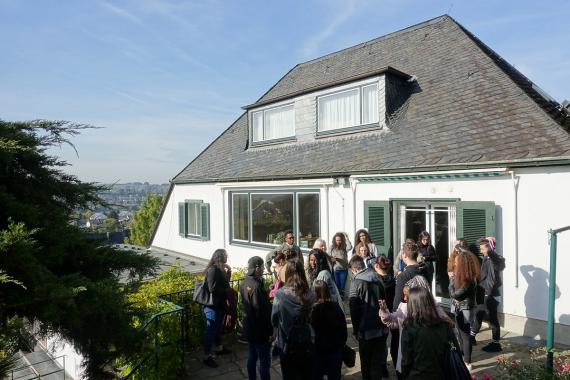 Nach dem intensiven Tag im EL-DE-Haus in Köln fuhr die Gruppe am nächsten Tag nach Rhöndorf und besichtigte die neue Ausstellung der Stiftung Bundeskanzler-Adenauer-Haus und das Wohnhaus von Konrad Adenauer. Dort lag der Fokus auf Adenauers Zeit als Bundeskanzler, der auch als großer Staatsmann immer Kölner blieb.