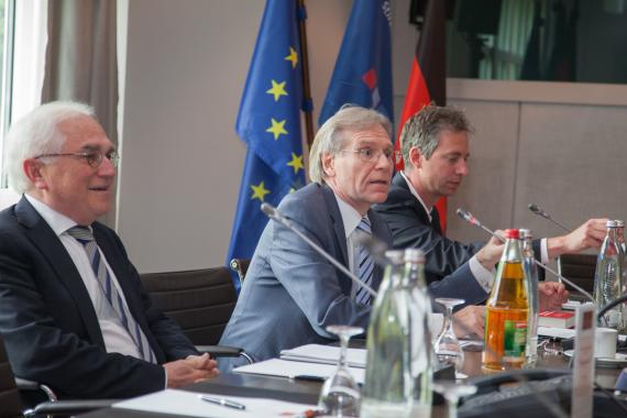 Ebenso wie der Zusammenbruch der Sowjetunion stellten auch die Auflösungserscheinungen in Jugoslawien die neue Bundesrepublik vor Herausforderungen. Prof. Dr. Marie-Janine Calic (Ludwig-Maximilians-Universität München) schilderte zunächst Ursachen, Verlauf und Folgen der Jugoslawienkriege. Für das frisch vereinigte Deutschland habe das Selbstbestimmungsrecht der Völker, das man gerade selbst erfolgreich in Anspruch genommen hatte, einen hohen Stellenwert gehabt, trotz des Spannungsverhältnisses zum Prinzip der Unverletzlichkeit der Grenzen. Die Bundesrepublik habe daher im Alleingang sehr früh die Unabhängigkeit Sloweniens und Kroatiens anerkannt. Auch wenn hierdurch die erhoffte Einhegung des gewaltsamen Konflikts nicht erreicht wurde, widersprach Calic der These, dies habe den Zerfall Jugoslawiens beschleunigt. Vielmehr sei die Desintegration langfristig in den Strukturen des Landes angelegt und der Krieg von außen nicht zu verhindern gewesen. Sie kritisierte jedoch deutlich, dass man die Anerkennungspolitik zum damaligen Zeitpunkt „nicht zu Ende gedacht“ habe, für die kein adäquater politischer und militärischer Rahmen gegeben war. Die Diskussion drehte sich unter anderem um den Einfluss historischer Vorbelastungen sowie der Medien auf die Haltung der Bundesregierung zum Jugoslawienkonflikt. Calic vertrat die Meinung, sowohl historische Reminiszenzen als auch der „CNN-Effekt“ hätten nur eine untergeordnete Rolle gespielt. Ausschlaggebend seien andere Faktoren gewesen, etwa die Tatsache, dass der Balkan strategisch nach dem Ende des Kalten Krieges nicht mehr so relevant zu sein schien und das Krisenmanagementinstrumentarium der internationalen Gemeinschaft noch nicht hinreichend entwickelt war. Dieses habe sich erst später ausdifferenziert – insbesondere durch die Erfahrungen im Jugoslawienkonflikt.