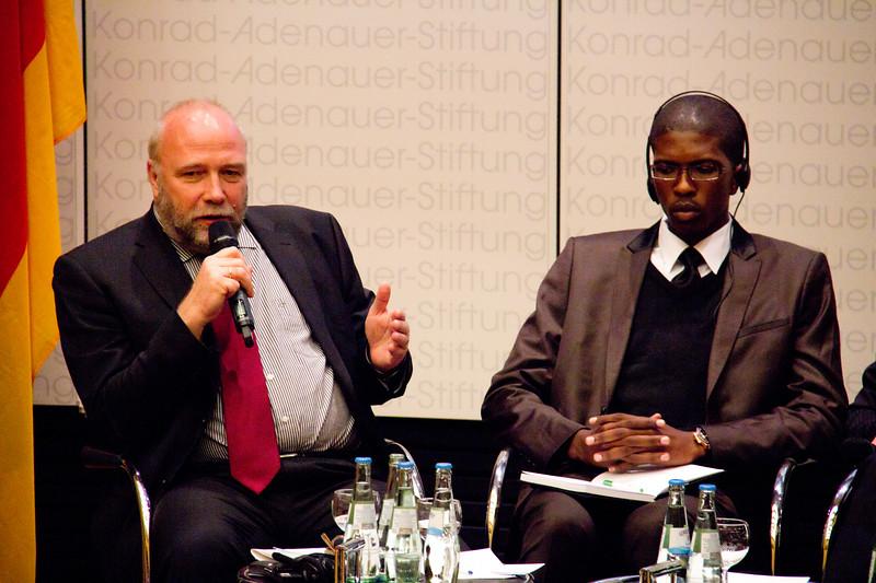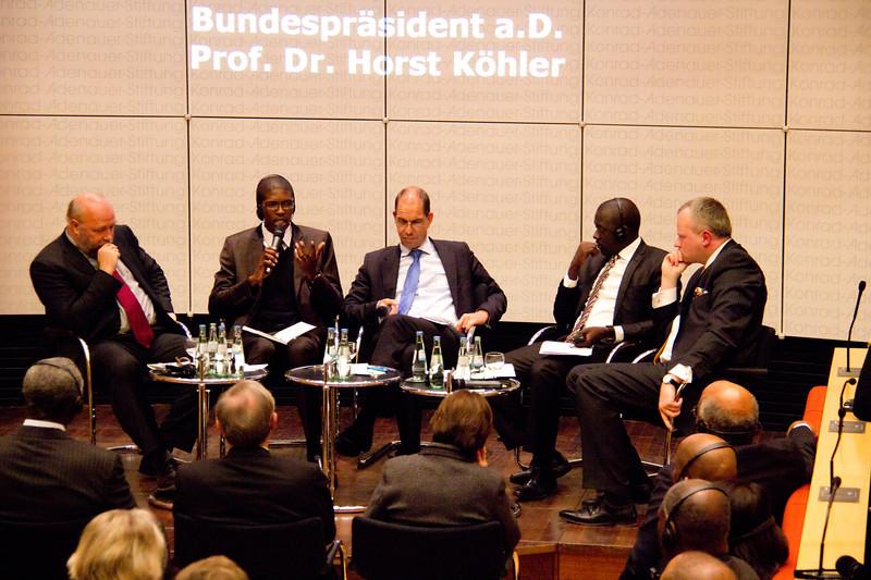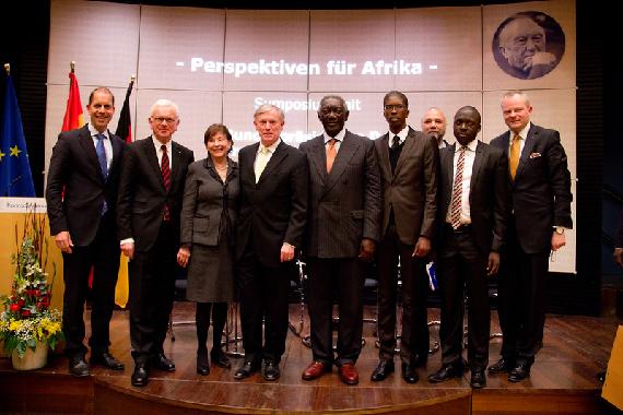Ein Weg, auf den vor allem die Jugend Afrikas, oder wie Köhler sie nennt, die „größte Kraft Afrikas“, mitgenommen werden muss. Denn es sind schier unglaubliche Zahlen, die Kufuor zuvor zitiert. 200 Millionen Jugendliche leben in Afrika. Bis 2045 wird sich diese Zahl verdoppeln. Es liegt auf der Hand, dass auf diese Entwicklung reagiert und eine Perspektive eröffnet werden muss. Spätestens seit dem Schicksal des Tunesiers Mohamed Bouazizi weiß die Welt, dass kaum etwas mehr soziale Sprengkraft birgt, als eine hoffnungslose Jugend. „Die Regierungen Afrikas müssen sich der jungen Generation annehmen“, mahnt Kufuor, um anschließend die Soziale Marktwirtschaft als Antwort auf die vielen offenen Zukunftsfragen zu präsentieren. Er würdigt das Prinzip des Ordoliberalismus - schon indem er für den Begriff aus dem Englischen kurz ins Deutsche wechselt – schlägt einen Ausbau des informellen Sektors vor und nimmt auch die Privatwirtschaft in die Pflicht. „Man sollte die Märkte laufen lassen“, so Kufuor, „aber jeder sollte sich an die Regeln halten. Auf der Grundlage der Partnerschaft ist das die Perspektive der afrikanischen Jugend.“