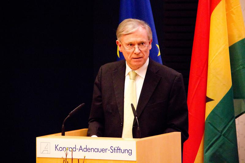 Es ist sein Thema, und es ist sein Abend. Horst Köhler, Bundespräsident a.D., der sich Zeit seines Lebens für Afrika engagiert hat, steht sichtlich bewegt am Rednerpult. Vor ihm das bis auf den letzten Platz gefüllte Forum. In der ersten Reihe sein langjähriger Weggefährte und Freund John Kufuor, der neben Köhlers Frau Eva Luise als Ehrengast Platz genommen hat. Die Beziehung der beiden Männer kann stellvertretend für die Politik, das Denken und große Ziel Köhlers stehen: Eines Tages kann aus einer Partnerschaft mit Afrika Freundschaft erwachsen.