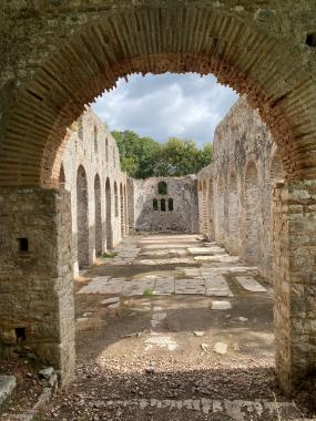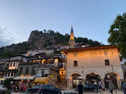 Der Weg führte u.a. entlang der weitgehend naturbelassenen Vjosa (dem letzten großen Wildfluss Europas und gerade erst 2023 als Nationalpark geschützt), die ihr mächtiges Flussbett vor den Reisenden ausbreitete. Mit Apollonia und Durrës präsentierten sich zwei bereits zu römischer Zeit wichtige Hafenstädte. Da ein Erdbeben den Verlauf der Vjosa im 4. Jh. veränderte und Apollonia verlandet, lief die Gruppe hier durch Ruinen. Durrës blieb dagegen verschont und hat sich zu einer Metropole mit dem wichtigsten Hafen des Landes entwickelt. Nach einem der opulenten Abendessen zeigte sich die auch in der Nacht lebhafte Strandpromenade in ihrer touristischen Attraktivität.