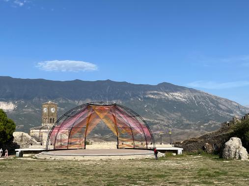 Am zentralen Skanderbeg-Platz gelegen, begrüßte das erste Hotel in Tirana für kundige Augen sogleich mit der Architektur aus kommunistischer Zeit (inzwischen mehrfach renoviert und umgebaut). Von dort aus fußläufig liegt im 11. Stock eines modernen Zwillingsturms das Auslandsbüro der Adenauer-Stiftung, die z.B. kürzlich eine Europa-Sommerschule für junge Leute ausgerichtet hat. Das Gespräch in der KAS und der Besuch im albanischen Parlament gaben einen Einblick in die vom Ministerpräsidenten Edi Rama in dritter Amtszeit geprägte politische Lage: schwache bis nicht existente Opposition, ausgeprägte Klientelpolitik (2022 liegt Albanien im Korruptionswahrnehmungsindex von Transparency International auf Platz 101 von 180 untersuchten Ländern), illegaler Cannabis-Anbau und Kokain-Handel, international erzwungene Schritte zu einer unabhängigen Justiz - aber durchaus auch Erfolge im Kampf um Veränderung.