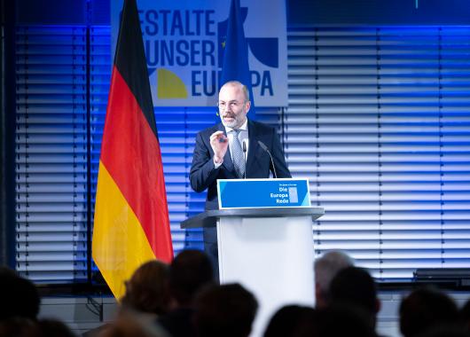 - Lasst uns jetzt groß denken! Zum einen müsse Europa mutige Schritte gehen und „die große Erfolgsgeschichte der Erweiterung der Europäischen Union“ weiterführen. Gleichzeitig unterstrich Weber die Eigenständigkeit der EU: „Unsere Regeln werden nicht im Silicon Valley, nicht im Weißen Haus, sondern im Europäischen Parlament entschieden.“