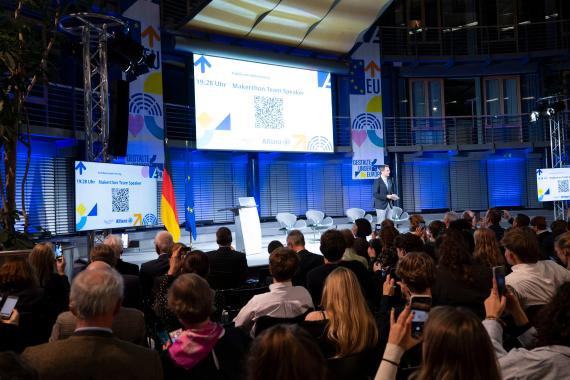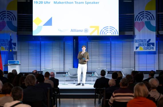 Eine Videopräsentation mit Eindrücken und Interviews vom diesjährigen Makerthon gab Einblicke in das Treffen, an dem Anfang Oktober in der ehemaligen Sommerresidenz Konrad Adenauers am Comer See 24 junge Europäerinnen und Europäer aus elf Staaten sowie fünf Coaches teilgenommen haben.