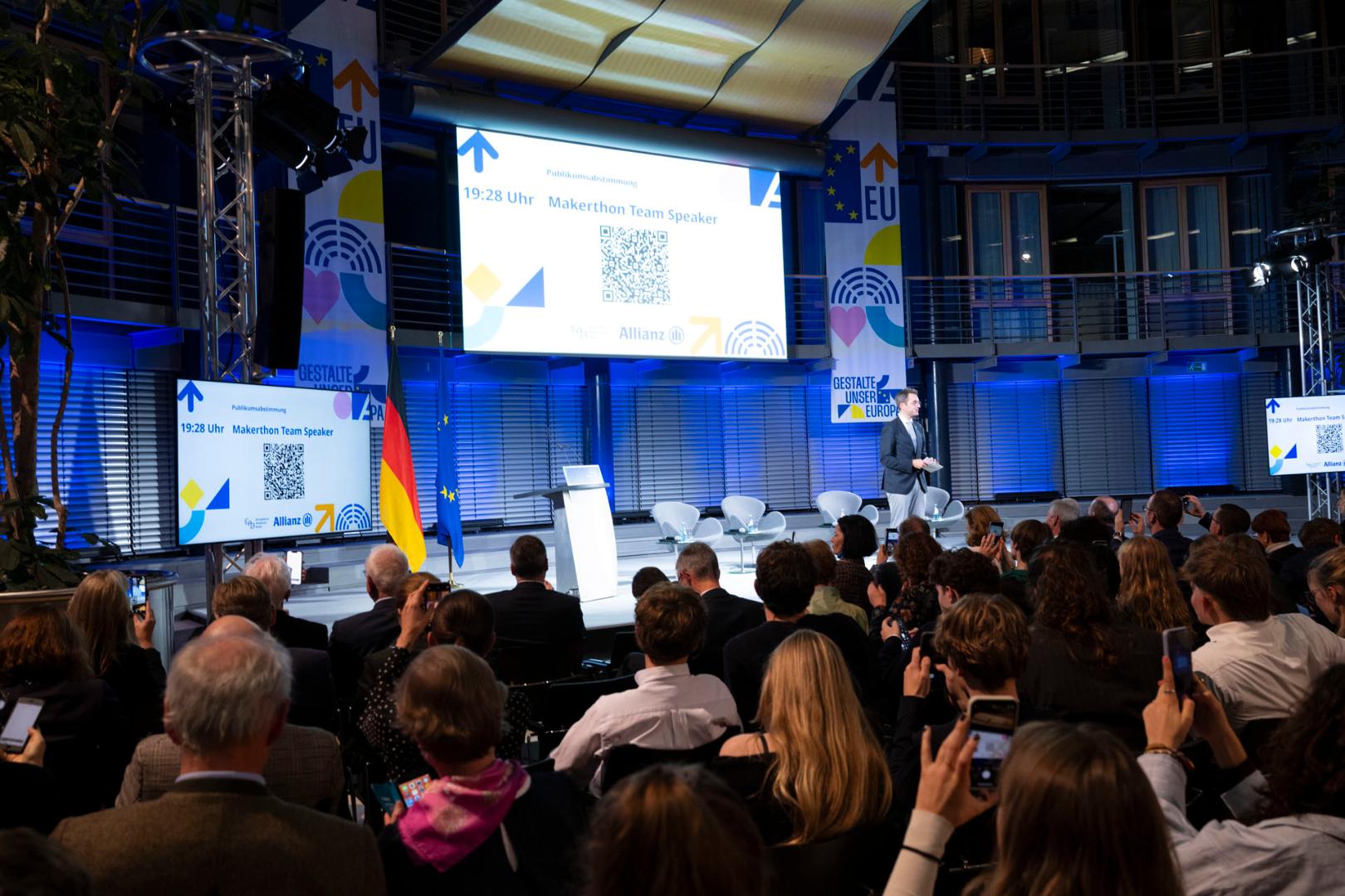 In einer Live-Abstimmung kürte das Publikum die Idee des Eurovision Start-up Contest zum Sieger. In Anlehnung an den Eurovision Song Contest ist damit ein europaweiter Wettbewerb für Start-ups gemeint: Jedes Land wählt in nationalen Vorrunden sein bestes Start-up aus und die Finalistinnen und Finalisten präsentieren sich live auf einer kontinentweiten Bühne. Millionen von Zuschauerinnen und Zuschauern stimmen am Ende für ihre Lieblingsideen und können durch Mikro-Spenden oder Crowdfunding zu Erstinvestoren werden. Mathis Sieglerschmidt konnte als Sieger der Publikumsabstimmung den für den Makerthon-Gewinner reservierten Platz auf der Podiumsdiskussion einnehmen.