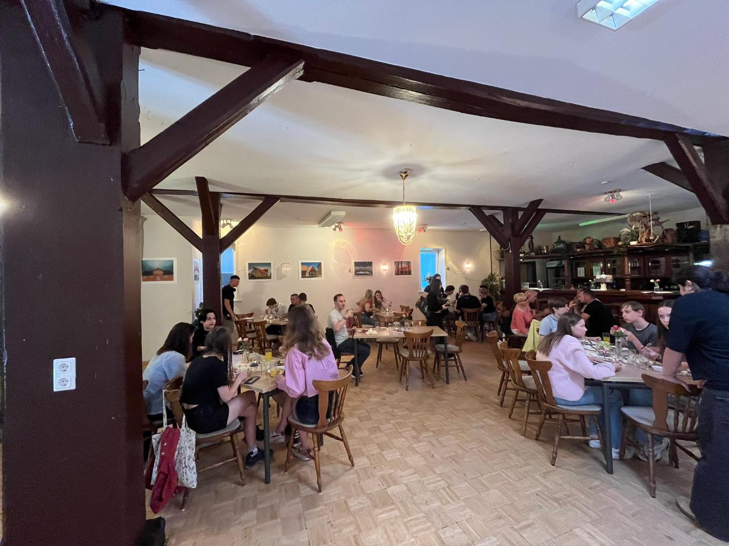 Der Workshoptag wurde durch eine kurze gemeinsame Mittagspause in einer kleinen Lokalität in Bergen unterbrochen. Auch hier war es sehr bemerkenswert zu sehen, wie schnell sich die Schülerinnen und Schüler aus den verschiedenen Ländern untereinander zusammengefunden haben und sich weiter austauschten.