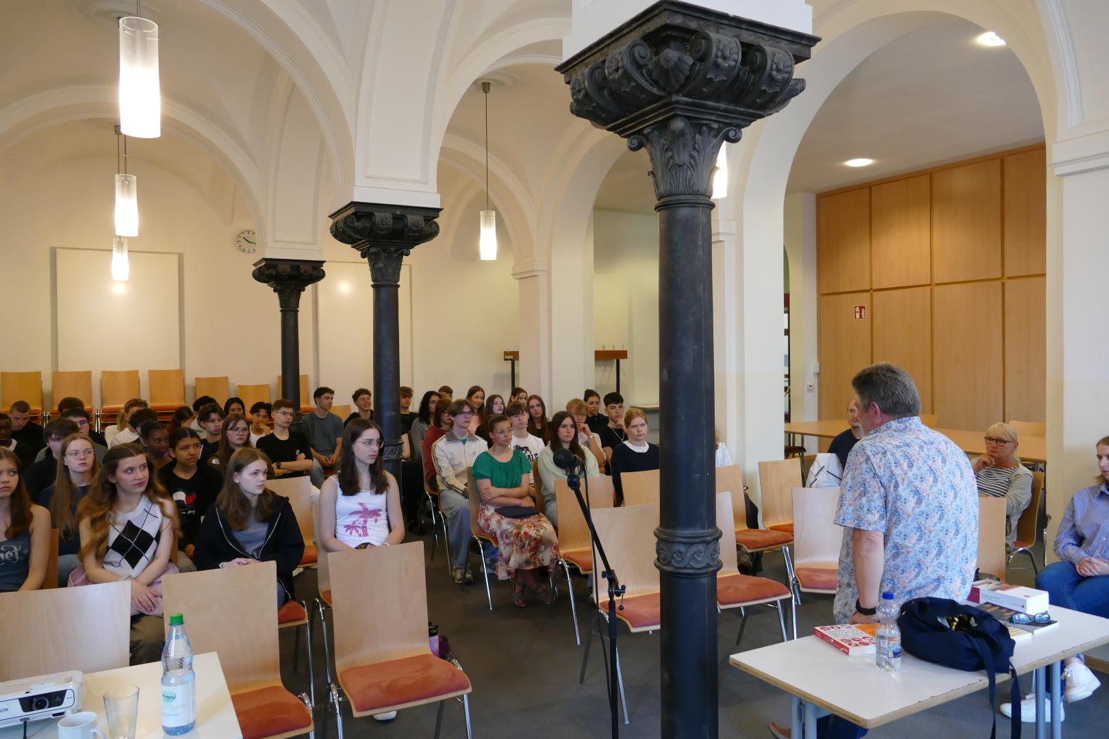 In den abschließenden Gesprächsrunden befragten die Schülerinnen und Schüler Ionescu zum Krieg im Gazastreifen. Ionescu meinte, dass er das Leid auf beiden Seiten sieht. Er wünscht sich eine friedliche Zwei-Staaten-Lösung. Er betonte zudem, dass pro-palästinensische Proteste nicht gezwungenermaßen antisemitisch sind. Proteste nach Frieden sollten weiterhin erlaubt sein.