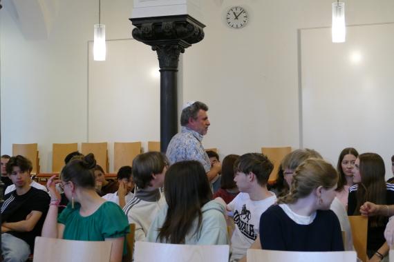 Mircea Ionescu kommt aus Rumänien, ist Musiker und spezialisiert auf Musik- und Tanztherapie. Seine Vorträge bieten den Schülerinnen und Schülern interessante Einblicke in das Judentum und erklären Tradition und Geschichte hinter der Religion.