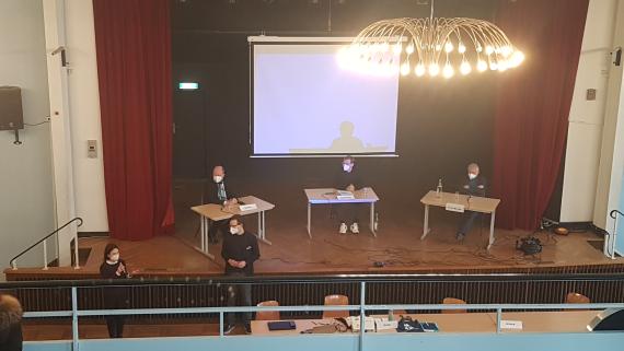 Es folgte eine Arbeitsphase der Schülerinnen und Schüler, in der sie sich mit dem Gehörten und den aufgeworfenen Fragen beschäftigten, was im Anschluss zu einer angeregten Diskussion mit den Referenten führte.