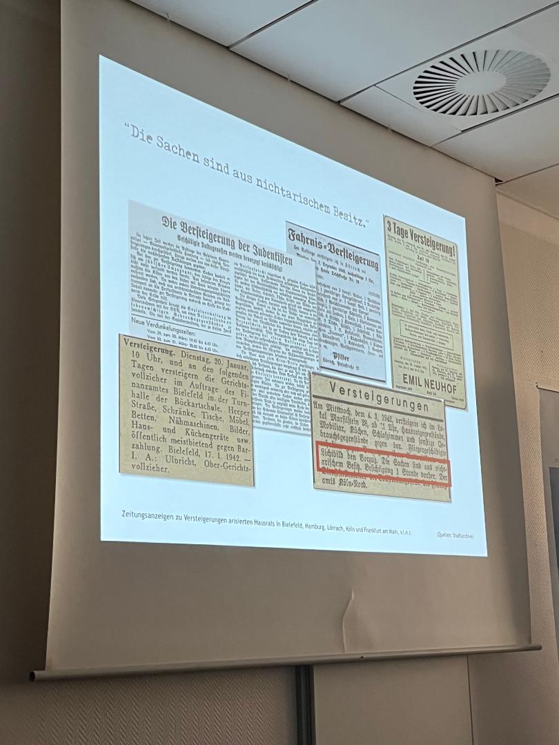 Zum Ende seines Vortrags kam Flesch zu dem ernüchternden Fazit, dass es bis heute keine umfassende Aufarbeitung der Arisierung gebe und auch nie geben werde. Der nationalsozialistische Staat sei in vielerlei Hinsicht ein „Sozialstaat für arische Bürger“ gewesen, der auf dem Raub an jüdischen Mitbürgerinnen und Mitbürgern basierte. Die Veranstaltung machte deutlich, dass die Arisierung nicht nur ein historisches Kapitel ist, sondern bis heute in Unternehmensgeschichten, im kollektiven Gedächtnis und in Familienbiografien nachwirkt.