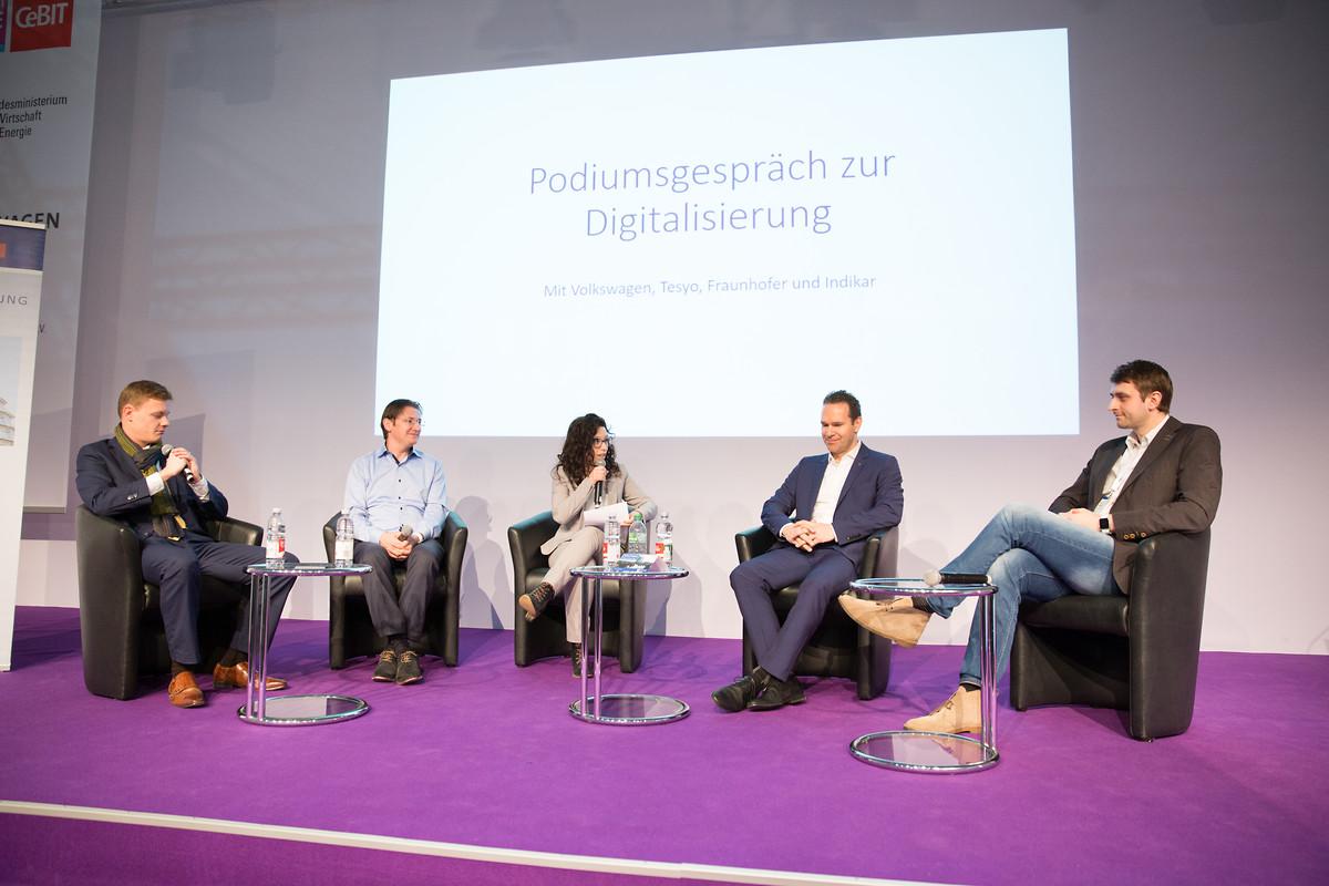 Wenn Johann „JJ“ Jungwirth mit enthusiasm über die völlig neue user experience in self driving cars, einem notwendigen change of mindset in unserer Gesellschaft oder der Zukunft von AI (artificial intelligence) spricht, fühlt man sich als mit Füller und Notizblock bewaffneter Zuhörer einer Paneldiskussion mit dem Titel „Herausforderungen und Chancen der Digitalisierung“ sofort unheimlich inspiriert aber irgendwie auch plötzlich sehr alt. Seit November 2015 leitet Jungwirth, der zuvor fünf Jahre für Apple im Bereich der Entwicklung der Mac Computersysteme tätig war, den im VW-Konzern neu geschaffenen Fachbereich Digitalisierungsstrategie. Denken wir beim Stichwort Topmanager an Maßanzug, Einstecktuch und blank polierte Budapesterschuhe, so sitzt Jungwirth, der die letzten neun Jahre im Silicon Valley verbracht hat, ganz unprätentiös im hellblauen Hemd, mit randloser Brille und Apple-Watch am Handgelenk auf dem Podium im Konferenzraum der Messehalle 11 in Hannover. Jungwirth betont, wie wichtig es für ein Unternehmen ist, dass auch die einzelnen Unternehmensbereiche sowie das Topmanagement hinter der Digitalisierungsstrategie stehen. Der Volkswagen-Konzern hat allein in den in den letzten 15 Monaten 14 verschiedene Digitalisierungsprojekte realisiert. In 37 Digital Labs (u.a. auch in Berlin) arbeiten Programmierer, Data Scientists, Design-Thinking-Experten und Cloud-Architekten zusammen an Software-Lösungen für neue Geschäftsmodelle des Automobilkonzerns. Johann Jungwirth sieht die Zukunft des Unternehmens in einer vollständigen Digitalisierung aller Geschäftsprozesse - angefangen von Design und Entwicklung bis hin zum Bereich After Sales. Durch die Anwendung von künstlicher Intelligenz könne man immer mehr Prozesse automatisieren, sodass in Zukunft der Mensch in solch einem smart enterprise mehr Zeit für kreative und schöpferische Tätigkeiten habe. Die Vorteile dieser digitalen Transformationen liegen auf der Hand: „Die Produkte werden besser, die Produktzyklen kürzer und der Kunde durch die Einbindung in den Designprozess glücklicher“, fasst Jungwirth zusammen.