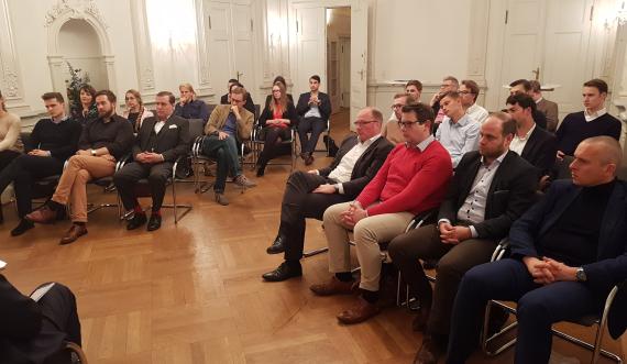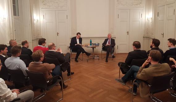 Zum Einstieg diskutierten die Gäste am Freitagabend im Rokokosaal des Wranglschlösschens mit Brigadegeneral a.D. Dr. Klaus Wittmann. In einer kurzen Einführung sowie anschließender regen Diskussion mit den Teilnehmern wurde ein sicherheitspolitischer Rundumschlag zu aktuellen gegenwärtigen Themen behandelt: die deutsche Rolle in Europa und der Welt, Russland, Bedrohungen aus dem Cyberraum und tagesaktuell der Ausstieg der USA aus dem INF Vertrag. Wittmann selbst war in den 90er Jahren im Internationalen Militärstab der NATO tätig. Er konnte anekdotisch das ein oder andere Erlebnis aus erster Hand wiedergeben und schlug den Bogen in die heutige Zeit. Russland und die europäische Sicherheitslandschaft, besonders im Baltikum seien leider wieder ein Thema. Im Anschluss gab es einen Empfang, bei dem ein besonderes Bier – das friedlichste Bier der Welt – der Initiative „Drink for Peace“ gereicht wurde. Das Bier wird gemeinsam von Brauern in Konfliktregionen wie dem geteilten Zypern, Bosnien-Herzegowina sowie Israel und den palästinensischen Gebieten gebraut. Der Erlös unterstützt mit einem Teil der Erlöse soziale Projekte vor Ort. Mit dieser friedlichen Aussicht wurde der erste Teil der Veranstaltung perfekt abgerundet.
