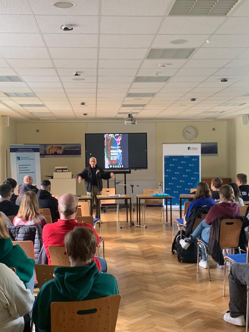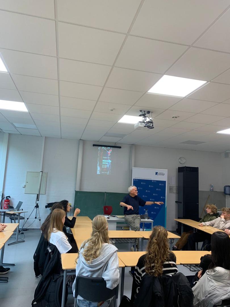 Im Anschluss konnten Schülerinnen und Schüler Fragen stellen, unter anderem wie das Leben nach der Ausbürgerung in Westberlin war? Linke erklärte, dass es schwer war, Anschluss zu finden. Auch die Suche nach einer neuen Anstellung gestaltete sich schwer.