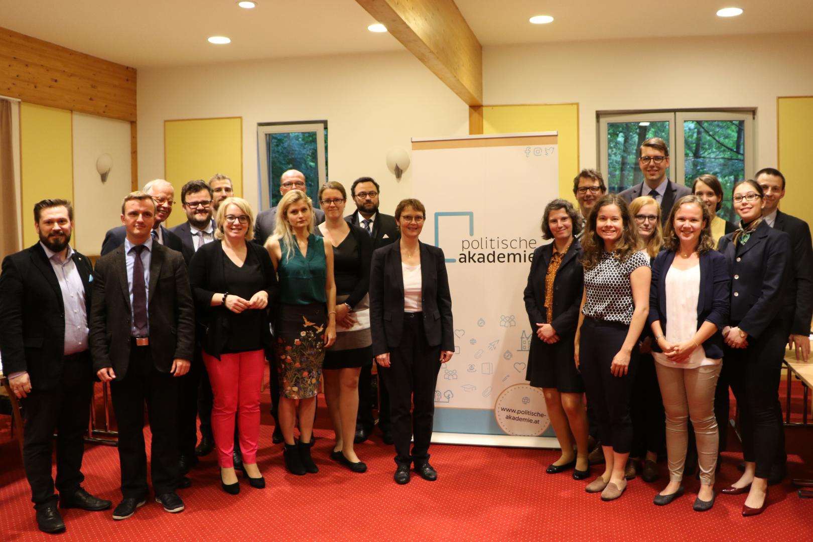 Am frühen Abend erlebten die Mitglieder des Arbeitskreises die erste Rede des nach dem Misstrauensantrag gestürzten Kanzlers, Sebastian Kurz, live in der Politischen Akademie. Vor der Rede bot Bettina Rausch, Leiterin der Politischen Akademie der Österreichischen Volkspartei (ÖVP), einen Einblick in die Schwerpunkte der Arbeit der Akademie, welche zum einen den gesetzlichen Auftrag der politischen Bildung verfolgt und zum anderen einen thematischen Fokus auf die Region des Westbalkan setzt. Nach der Rede von Sebastian Kurz widmete sich der Arbeitskreis im Gespräch mit dem Landesverteidigungsminister a.D. und Präsidenten des Austria Institut für Europa und Sicherheitspolitik, Werner Fasslabend, den globalen außen- wie sicherheitspolitischen Prioritäten des 21. Jahrhunderts. Kräfteverhältnisse zwischen globalen Akteuren wie den USA, China und Russland, aber auch geopolitische Gefahren wurden analysiert. Abschließend legte Erik Kroiher, ehemaliger Internationaler Sekretär der Österreichischen Volkspartei dar, welchen Strukturwandel die österreichische Parteienlandschaft innerhalb der letzten Jahrzehnte vollzogen habe und welche Auswirkungen dies für die Gegenwart sowie die nahe Zukunft haben könnte. Ebenso ging der Arbeitskreis in diesem Gespräch näher auf die Ergebnisse der Europawahl ein.