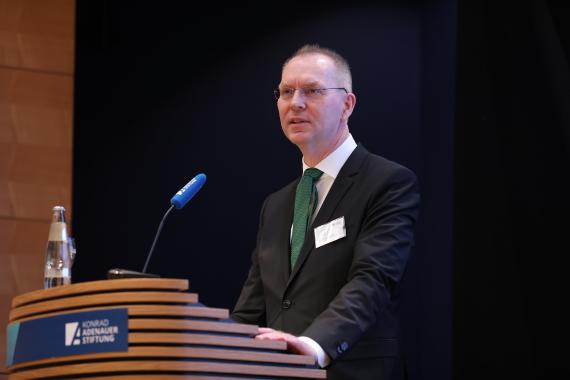 Mit Verweis auf die enorme politische Verantwortung eröffnete Dr. Peter Fischer-Bollin, Hauptabteilungsleiter bei der Konrad-Adenauer-Stiftung, den zweiten Tag der Konferenz.