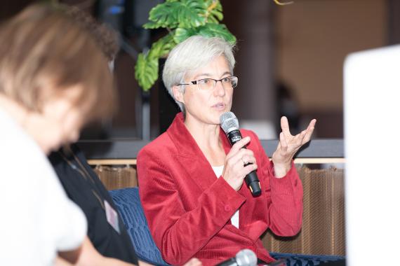 Auch in dem darauffolgenden Podiumsgespräch mit Dr. Brigitte Knopf, u.a. Mitglied und stellvertretende Vorsitzende des Klima-Expertenrates der Bundesregierung, stellte Kokott die Rolle des EuGH heraus, verdeutlichte aber gleichermaßen, dass die Lösung der Klimaschutzproblematik nicht beim EuGH liege. Im Unterschied zum Bundesverfassungsgericht agiere dieser vielmehr als ein Fachgericht. Zumal sich auch nicht die Möglichkeit einer Verfassungsbeschwerde vor dem europäischen Gericht biete.