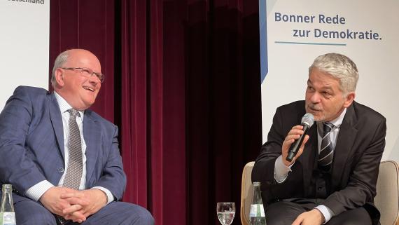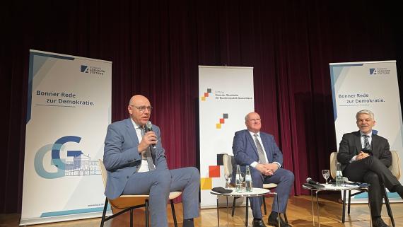 In der anschließenden Diskussion, die von Prof. Harald Biermann, dem Präsidenten des Hauses der Geschichte, kundig geleitet wurde, war viel von politischer Führung die Rede. Sie sei jetzt erforderlich. Alle großen politischen Entscheidungen in der Geschichte der Bundesrepublik seien, als sie getroffen wurden, unbeliebt gewesen. Diese Situation ist jetzt wieder da, und es habe den Anschein, dass der Ernst der Lage von der Politik noch nicht erkannt sei. Diese melancholische Betrachtung gipfelte in dem Bonmot Masalas, dass „solange die Politik in Berlin mehr Angst vor dem Bundesrechnungshof habe als vor Russland, wir noch nichts begriffen hätten“. So konnte sich dieser eigentlich nachdenklich gestimmte Abend in Gelächter auflösen, und doch werden viele der 300 Anwesenden nicht ohne (gewisse) existentielle Sorgen nach Hause gegangen sein.