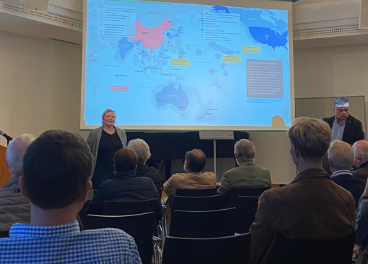 Nach Begrüßung und Einführung in die Thematik durch den Leiter der Gesellschaft für Sicherheitspolitik, Martin Ahnesorg, und die Tagesleitung der Konrad-Adenauer-Stiftung Carla Gremmer, referierte der langjährige Leiter der Konrad-Adenauer-Stiftung in China, Thomas Awe, über Chinas Nationalismus und den Taiwan-Konflikt.