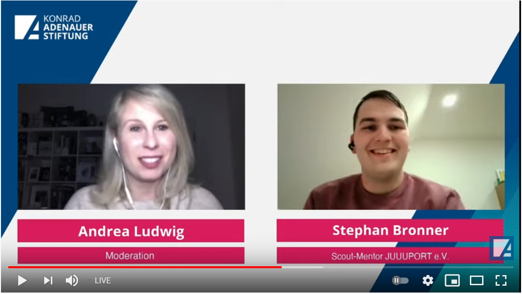 Bronner zeigte am Beispiel der Netflix Serie Tote Mädchen lügen nicht, in der Mobbing und Suizid thematisiert wurde, auf, dass viele Jugendliche erst dadurch erkannten, dass es sich bei ihren eigenen Erfahrungen und Erlebnissen auch um Mobbing handelte. JUUUPORT bekam nach der Ausstrahlung der Serie deutlich mehr Anfragen, da diese von dem Streaming Anbieter als Hilfenummer eingeblendet wurde. Zusätzlich ist JUUUPORT auch auf Messen wie der Games Com vertreten und versucht für das Thema Online-Mobbing zu sensibilisieren und darüber aufzuklären. Außerdem sind sie auch viel in Schulen unterwegs um die Schülerinnen und Schüler, sowie Lehrkräfte direkt erreichen zu können. Denn gerade in einer Welt in der die Digitalisierung immer mehr zunimmt und die Mediennutzenden ansteigen, nehmen leider auch die Gefahren von Onlinemobbing und Hasskommentaren zu. Abschließend hebt Bronner daher die Relevanz präventiven Arbeitens hervor. Gemeinsam stellen sich die Konrad-Adenauer-Stiftung und JUUUPORT diesem Ziel.