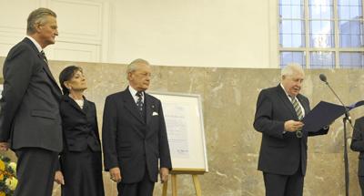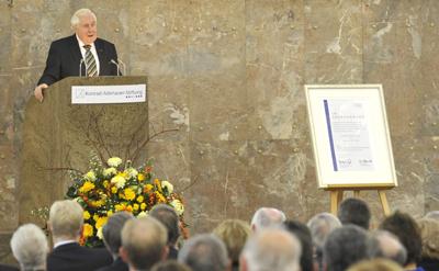 „Soziale Marktwirtschaft braucht Vorbilder und Autoritäten, um lebendig zu bleiben“, sagte Laudator Günther Oettinger, der als Ministerpräsident Baden-Württembergs ein langjähriges freundschaftliches Verhältnis zu dem Waiblinger Unternehmerpaar pflegt. Ihn fasziniere vor allem, dass sich STIHL zu einem Weltunternehmen „mit Kultur“ entwickelt habe, deren Verantwortliche und Mitarbeiter sich ihrer Wurzeln bewusst seien und sich füreinander verantwortlich fühlen.