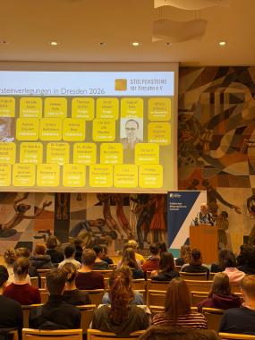 Den Auftakt gestaltete Brigitte Lange mit einem Vortrag über den Verein „Stolpersteine für Dresden e. V.“. Sie beleuchtete nicht nur die Hintergründe der Initiative, sondern machte die Geschichte anhand konkreter Schicksale greifbar. Dabei sprach sie über die Verfolgung von Juden, Sinti, Homosexuellen und Zeugen Jehovas während der NS-Zeit und ging im Anschluss auf die Fragen der Schülerinnen und Schüler zu den einzelnen Biografien ein. Anschließend gingen die Schülerinnen und Schüler in die jeweiligen Workshops und Diskussionen.