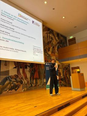 Der vierte Workshop wurde als „Demokratieworkshop“ von Max Andrè Haller (Stadtschülerrat) gestaltet. Hier lag der Schwerpunkt auf der aktiven Mitgestaltung und der Frage, was Demokratie ganz konkret bedeutet. In diesem geschützten Raum konnten die Schülerinnen und Schüler über die Funktionsweise der Demokratie diskutieren und Ideen der eigenen Beteiligung entwickeln.