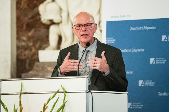 Eröffnet wurde die Veranstaltung mit einem kurzen Impulsvortrag von Prof. Dr. Norbert Lammert, Präsident des Deutschen Bundestags a.D. und Vorsitzender der Konrad-Adenauer-Stiftung. Lammert verwies auf die zunehmend als krisenhaft empfundene politische Lage und daraus resultierende Veränderungen. Spätestens der Angriff Russlands auf die Ukraine habe zu einer neuen Wahrnehmung von Realitäten beigetragen und die Vermutung „gründlich ramponiert“, dass man in „ein für alle Mal gesicherten Friedenszeiten“ lebe. Derlei Errungenschaften müssten immer wieder aufs Neue gesichert werden, sagte Lammert. „Der Frieden ist kein Naturzustand.“