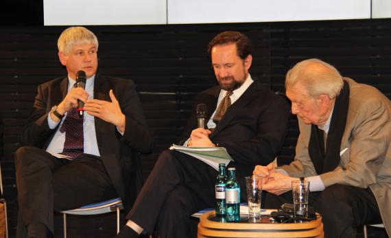 Im anschließenden Podiumsgespräch schilderte der 1931 geborene ehemalige Tschechische Botschafter in Berlin, Dr. František Černý, die Ereignisse aus der Perspektive des Zeitzeugen. Er war während des Prager Frühlings als Journalist tätig und erhielt in der Folge Berufsverbot. Auf die Frage, warum überhaupt so viele Menschen die Hoffnung auf Reformen, einen „Sozialismus mit menschlichem Antlitz“ geteilt hätten, wenn doch alle Aufstände im sowjetischen Machtbereich zuvor blutig unterdrückt worden waren, antwortete Černý, dass es Anzeichen für eine Liberalisierung gegeben habe. So hätten Journalisten durchaus gewisse Freiheiten in ihrer Arbeit genossen. Es sei immerhin möglich gewesen, Probleme offen anzusprechen. Eindrucksvoll beschrieb Černý die problematische Rolle des DDR-Staatsratsvorsitzenden Walter Ulbricht, der zu den „Hardlinern“ im sozialistischen Lager und damit zu den treibenden Kräften einer Intervention in der Tschechoslowakei gehört habe. Unter anderem gab er schmunzelnd die Anekdote zum Besten, dass die tschechoslowakische Führung Ulbricht absichtlich nach Karlsbad eingeladen habe, das vor allem von deutschen Touristen bevölkert gewesen sei, sowohl aus der DDR als auch aus der Bundesrepublik. Beim öffentlichen Zusammentreffen Dubčeks mit Ulbricht hätten die versammelten Deutschen lauthals den Namen des tschechoslowakischen Politikers skandiert.