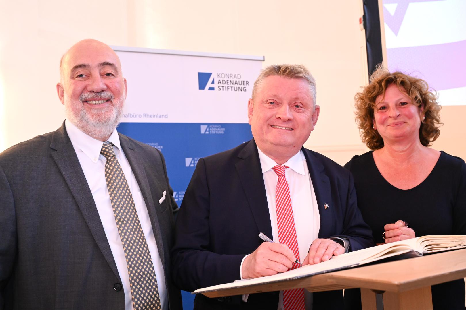 Nach dem Grußwort startete die Veranstaltung inhaltlich mit einem Kurzvortrag von Schirmherr Hermann Gröhe, MdB. Der stellvertretende Vorsitzende der CDU/CSU-Fraktion gab einen fundierten Einblick in die aktuellen Entwicklungen Israels und lenkte gemeinsam mit der Zuhörerschaft den Blick auf die wechselvolle Geschichte zwischen Israel und Deutschland. Dabei nahm er eine klare Position gegen den israelbezogenen Antisemitismus ein und unterstrich unmissverständlich die uneingeschränkte Solidarität und Unterstützung für Israel: "Wir stehen zweifellos an der Seite Israels. Wir treten entschieden gegen jede Form von Antisemitismus ein."