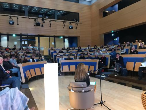 Das Ergebnis dieses jahrelangen Prozesses ist ihr Buch „Die Brüder Himmler: Eine deutsche Familiengeschichte“. Aus diesem las Katrin Himmler vor. Sie setzte sie sich nicht nur mit der Rolle ihres Großonkels Heinrich Himmler auseinander, der durch seine schrecklichen Verbrechen grausame Prominenz erhalten hatte: Ihr Fokus lag auf ihrem Großvater Ernst Himmler. Der jüngere Bruder des Reichführers SS war anders als ein bis in ihre Familie hineinreichendes Bild suggerierte, kein Mitläufer, sondern überzeugter Nationalsozialist sowie Partei- und SS-Mitglied.