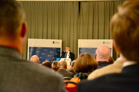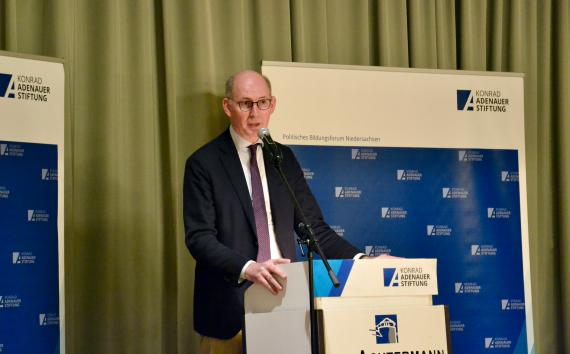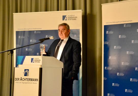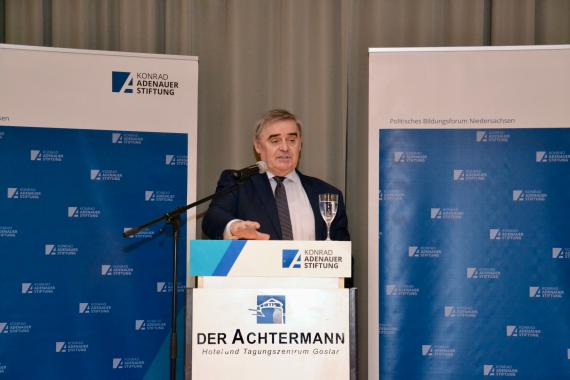 Die 185 Teilnehmer aus Niedersachsen dankten Peter Müller mit langanhaltendem Applaus für die fulminante Rede und diskutierten diese intensiv beim anschließenden Empfang.