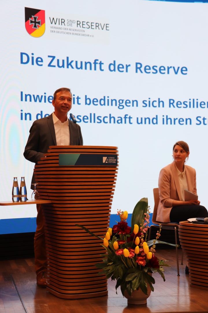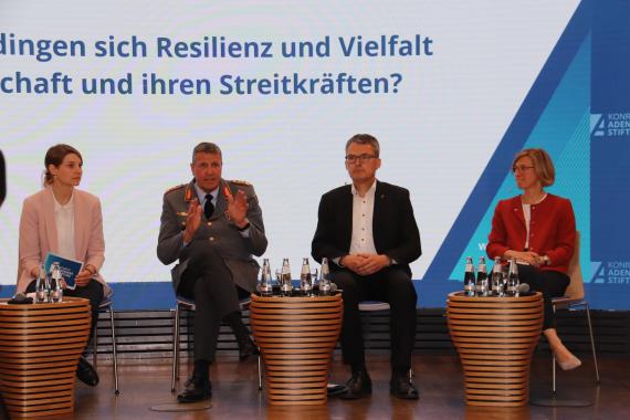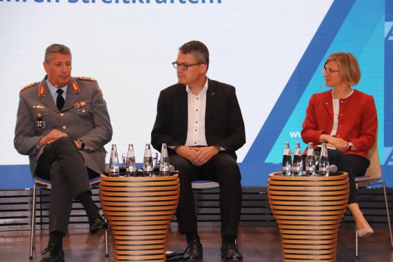 Aus militärischer Perspektive machte Generalleutnant Markus Laubenthal, Stellvertreter des Generalinspekteurs der Bundeswehr, deutlich, dass nicht erst der Beginn des russischen Angriffskrieges auf die Ukraine, sondern bereits die Annexion der Krim 2014 ein Weckruf gewesen sei. Der Fokus müsse wieder verstärkt auf Landes- und Bündnisverteidigung gelegt werden. Dafür benötige es ein (angepasstes) Fähigkeitsprofils sowohl für die aktiven Soldatinnen und Soldaten als auch für die Reserve. Mit Bezug auf das geplante Sondervermögen von 100 Milliarden Euro mahnte Laubenthal zu einem nachhaltigen Einsatz des Geldes, da es Defizite in allen Fähigkeiten und Bereichen der Bundeswehr gäbe, die dringend behoben werden müssten.