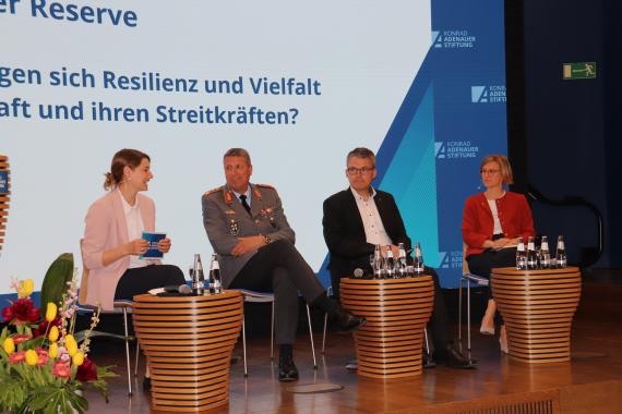 Der russische Angriffskrieg auf die Ukraine hat uns deutlich vor Augen geführt, dass es eine neue Form von Wehrhaftigkeit in der Bundeswehr und Resilienz in der Bevölkerung bedarf, und die „Zeitenwende“ nicht länger ignoriert werden kann. Die Frage nach der Verteidigungsfähigkeit Deutschlands sei relevanter denn je, sagte Dr. Peter Fischer-Bollin, Leiter der Hauptabteilung Analyse und Beratung der Konrad-Adenauer-Stiftung, in seinem Eingangsstatement. Eine besondere Rolle nehmen hierbei die Reservistinnen und Reservisten ein. Sie seien sowohl eine Stütze als auch ein Querschnitt der Gesellschaft, so Pascal Kober, Stellvertreter des Präsidenten des Verbandes der Reservisten der Deutschen Bundeswehr e.V. Was aber bedeuten nun der russische Angriffskrieg und die proklamierte Zeitenwende für die zukünftige Ausrichtung deutscher Sicherheitspolitik? Welche Folgen ergeben sich für Gesellschaft und Truppe? Welche personellen, materiellen und strukturellen Konsequenzen sind abzuleiten? Und wie lässt sich der Frauenanteil in der Bundeswehr und Reserve erhöhen? Diese und andere Fragen diskutierte Amelie Stelzner-Doğan, Referentin für Bundeswehr und Gesellschaft bei der Konrad-Adenauer-Stiftung, am 10. Mai 2022 in einer hybriden Gesprächsrunde in Kooperation mit dem Verband der Reservisten der Deutschen Bundeswehr e.V. mit Vertretern aus Militär, Wissenschaft und Politik.