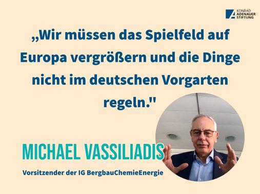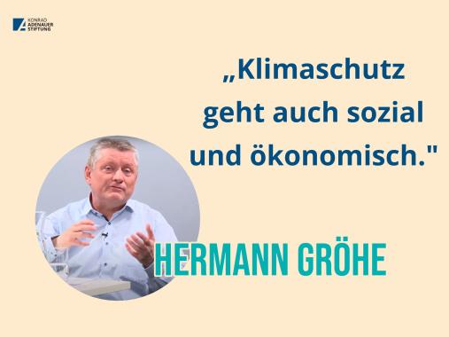 Es sei ein Gebot der Fairness, für die Menschen, die zum Wohlstand beigetragen haben, soziale Sicherheit zu gewährleisten, sagt Gröhe. Klimaschutz müsse sozial und ökologisch sein, damit Deutschland eine Vorreiterrolle einnehmen könne – nur dann würden die Maßnahmen nachgeahmt und es komme dem globalen Klima zugute. Dafür muss auch Europa mitspielen, sagt Vassiliadis: „Wir müssen das Spielfeld auf Europa vergrößern und die Dinge nicht im deutschen Vorgarten regeln."