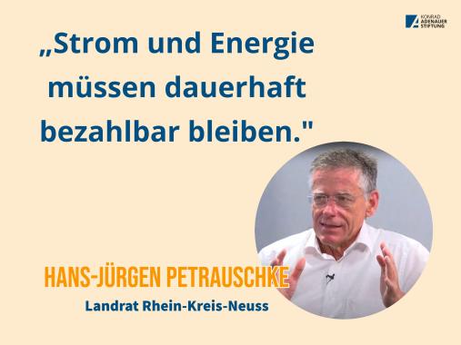 Der Schirmherr der Veranstaltung, Hermann Gröhe MdB, bezeichnet den Strukturwandel als „eine gleichermaßen Riesen-Herausforderung und eine Riesen-Chance.“ Der Umbau der deutschen Industrielandschaft habe eine Adresse im Rheinland. Es müsse weiterhin sichergestellt werden, dass es viele Arbeitsplätze gebe: „Es braucht ein Zusammenwirken alle politischen Ebenen für die Klimaneutralität und den Sozialstaat.“ Der Strukturwandel gehe einher mit „einer zukunftsorientierten Gesellschaft“, sagt der Landrat des Rhein-Kreis-Neuss, Hans-Jürgen Petrauschke. Man müsse dafür sorgen, dass die Betriebe, die schon im Rheinischen Revier angesiedelt seien, auch dort blieben und dauerhaft Arbeitsplätze und Ausbildungsplätze verfügbar sind. Dafür müsse die Energieversorgung gesichert werden.