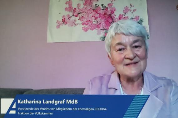 Dr. Helge Heidemeyer, Direktor der Gedenkstätte Berlin-Hohenschönhausen, diskutierte anschließend mit den Zeitzeuginnen Dr. Sabine Bergmann-Pohl, Präsidentin der 10. Volkskammer, Brigitta Kögler, Mitbegründerin des Demokratischen Aufbruchs (DA) und stv. Vorsitzende der CDU/DA-Fraktion, sowie Hildigund Neubert, die ebenfalls zu den Mitbegründerinnen der DA zählte. Auch die Vorsitzende des Vereins der ehemaligen Mitglieder der CDU/DA-Fraktion Katharina Landgraf MdB erinnerte sich an die Arbeit in der Volkskammer.