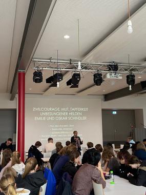 Vom 13. November bis zum 15. November führten wir mit der Prof. Erika Rosenberg-Band eine Veranstaltungsreihe zum Thema „Zivilcourage, Mut, Tapferkeit Unbesungener Helden Emilie und Oskar Schindler“ durch.