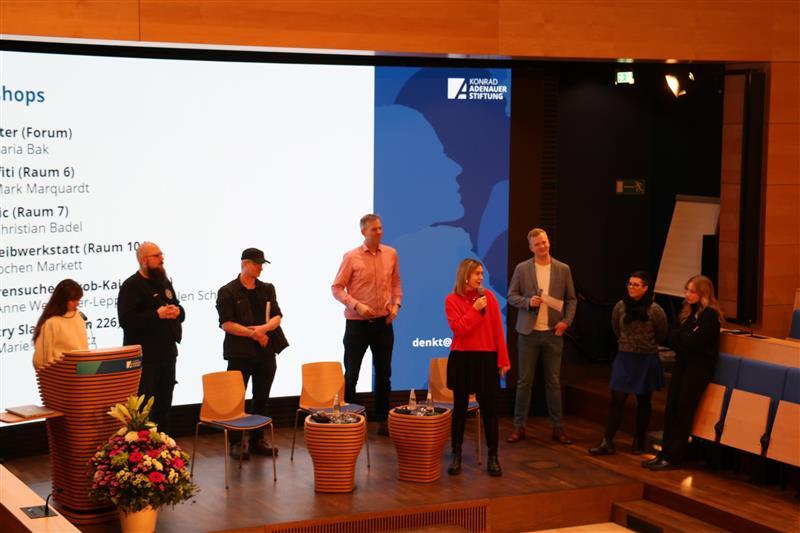 Im Anschluss an die Diskussion arbeiteten die Jugendlichen zwei Tage in Workshops, in denen sie sich intensiv mit dem diesjährigen Motto „Ihre Geschichte (er)zählt – Frauen im Holocaust“ beschäftigten. Kreativ brachten sie die Themen auf vielfältige Weise zum Ausdruck – in Poetry Slams, Theaterstücken, Comics, Texten, Graffitis oder in einem Rechercheworkshop „Spurensuche“. Eine Gruppe nutzte die Zeit zudem für einen Besuch im Jüdischen Museum, während die übrigen Gruppen ihre Projekte direkt vor Ort weiterentwickelten. Die Bandbreite der Ergebnisse zeigte eindrucksvoll, wie wichtig solche Veranstaltungen sind, um die Erinnerungskultur lebendig zu halten, Jugendliche für historische Verantwortung zu sensibilisieren und die Auseinandersetzung mit Antisemitismus auch in der heutigen Gesellschaft zu stärken.