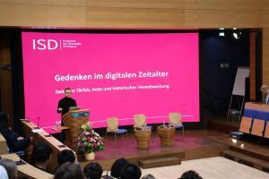 Den Auftakt des JugendpolitikTags bildete die Begrüßung der Jugendlichen durch Dr. Sandra Busch-Janser, stellvertretende Leiterin der Politischen Bildung der Konrad-Adenauer-Stiftung, im Forum der Akademie. Mit der offiziellen Eröffnung leitete sie in das Programm ein. Daraufhin folgte ein Vortrag von Jakob Guhl, Director of Policy and Research beim ISD Germany, zum Thema „Gedenken im digitalen Zeitalter – Zwischen TikTok, Insta und historischer Verantwortung“, der den ersten inhaltlichen Impuls der Veranstaltung setzte.