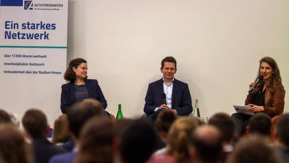 Wie das Motto des ASeV „Zurückgeben und Weitergeben“ angesichts dieser herausfordernden Zukunftsthemen weiterhin mit Leben gefüllt werden kann, zeigte sich im Worldcafé. Die Absolventinnen und Absolventen tauschten sich dabei mit den Vorstandsmitgliedern, Netzwerksprechern und Regionalgruppenvertreterinnen der Altstipendiaten über die vielfältigen Möglichkeiten der Netzwerkarbeit der Alumniorganisation aus. Mit inzwischen über 3.500 Mitglieder ist der Altstipendiatenverein mittlerweile die zentrale Drehscheibe bei der Vernetzung. Durch ihn werden vielfältige Altstipendiatenaktivitäten im In- und Ausland gefördert und unterstützt.