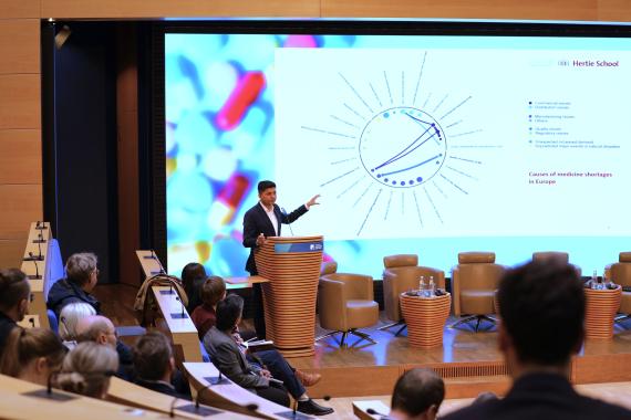Im Anschluss stellte der Professor für Gesundheitsgovernance an der Hertie School und Co-Studienleiter Dr. Mujaheed Shaikh erste Ergebnisse des Forschungsprojekts zu Ursachen und Folgen von Medikamentenmangel vor. Die Studie stelle Ursachen und Wirkung ins Verhältnis, wobei grundsätzlich zwischen ökonomischen, klinischen und politischen Folgen unterschieden werden muss. Drei Forschungsfragen stünden im Mittelpunkt des Projekts: