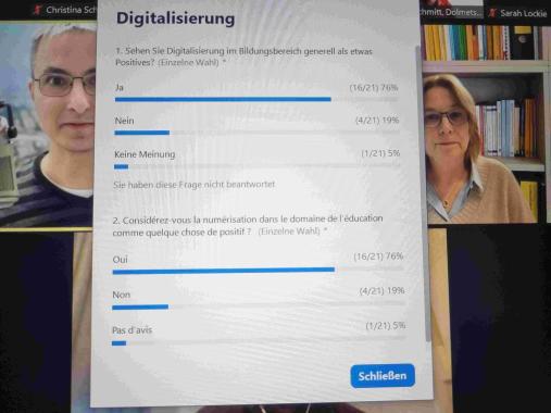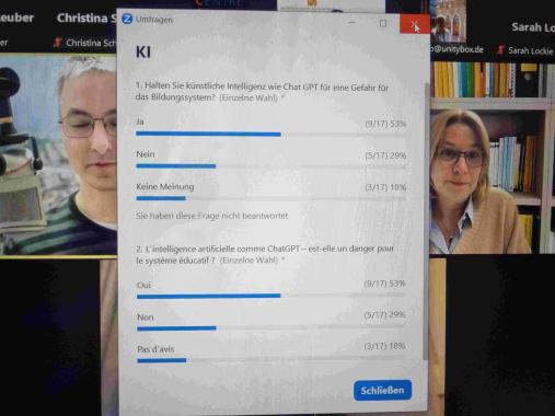 Gerade an dieser in der Öffentlichkeit heftige umstrittenen Frage der Nutzung von ChatGPT wurde die unersetzbare Funktion des Lernbegleiters deutlich: Nur er/sie kann Aufgaben stellen, die eigenständig gelöst werden müssen, um sie von den Antworten eines Algorithmus zu unterscheiden. Die eigentliche pädagogische Herausforderung liege in der Aufgabe, das Lernen in einer digitalisierten Umwelt zu organisieren. Kurzum: Wie der Taschenrechner den Mathematiklehrer nicht ersetzt, so sind auch Algorithmen kein Ersatz für den Lehrer oder die Lehrerin im Englisch- oder Geschichtsunterricht.