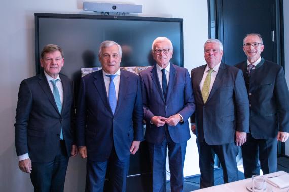 Neben der aktuellen Flüchtlingssituation im Mittelmeerraum ging es beim Austausch des Parteichefs der Forza Italia und den Mitgliedern des Bundestages auch um den Erweiterungsprozess der Europäischen Union. Italien pflegt seit vielen Jahren enge Beziehungen mit den Ländern des westlichen Balkans und unterstützt diese auf ihrem Weg in die Europäische Union. In diesem Zuge diskutierten die Teilnehmenden auch über notwendige Reformen der Entscheidungsprozesse der Europäischen Union. Darüber hinaus blickte man gespannt auf die Europawahl im nächsten Jahr und die Aussichten der EVP-Fraktion. Antonio Tajani als auch Prof. Dr. Hans-Gert Pöttering, ehemaliger Präsident des Europäischen Parlaments und Europabeauftragter der Konrad-Adenauer-Stiftung, bekräftigten die Bedeutung der Zusammenarbeit Deutschlands und Italiens auf europäischer Ebene.