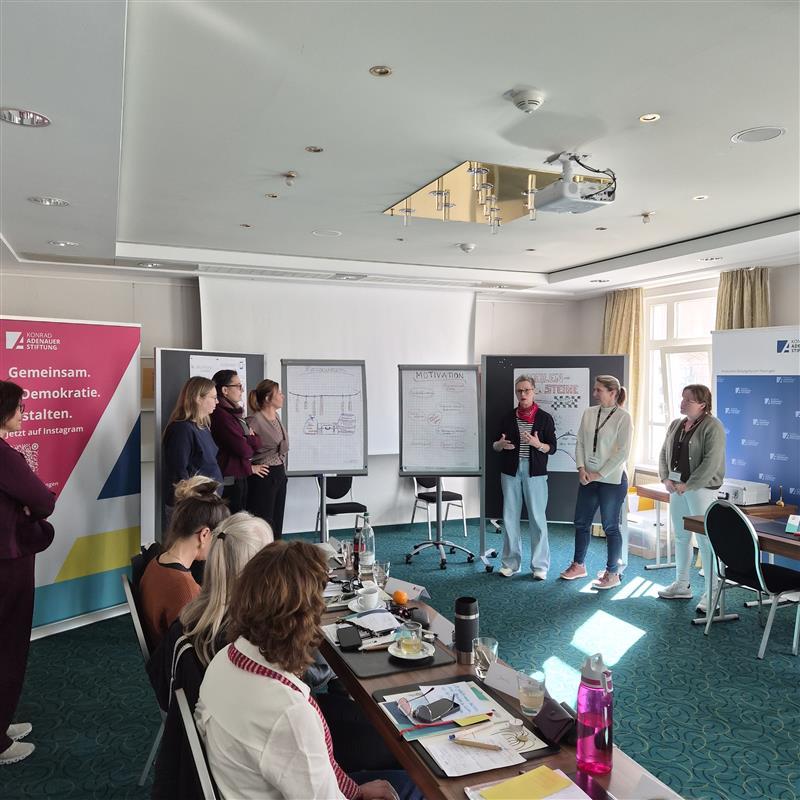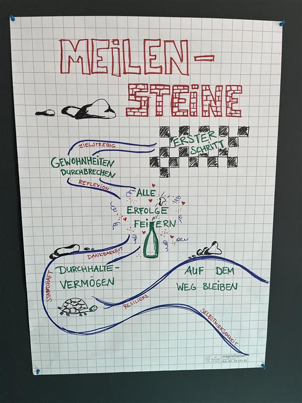 Sandra Bach, Kommunikationsdesignerin und Moderatorin, ergänzte das Seminar mit Methoden der Visualisierung. Die Teilnehmerinnen erarbeiteten individuelle Übersichten zu ihren persönlichen Zielen, Ressourcen und möglichen Hindernissen – ein praxisnahes Werkzeug für berufliche und private Entwicklungsprozesse.