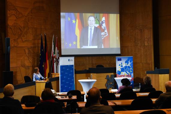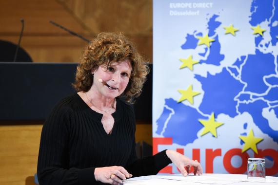 Im Plenarsaal des Düsseldorfer Rathauses geht es mit der Kommunalpolitik normalerweise um Politik auf kleinster Ebene – die in der Landeshauptstadt wohlgemerkt gar nicht so klein ist. An diesem Abend war der Fokus nochmal deutlich größer: Es ging um Europa. Die Leiterin des Regionalbüros Rheinland der Konrad-Adenauer-Stiftung, Simone Gerhards, begrüßte die zahlreichen Gäste und betonte die Notwendigkeit, gerade in diesen Zeiten über Europa zu sprechen. Düsseldorfs Oberbürgermeister Stefan Keller nannte die Europäische Union in seinem digitalen Grußwort „eine der größten, wichtigsten und erfolgreichsten Friedeninitiativen aller Zeiten, eine Gemeinschaft des Miteinanders und der Völkerverständigung.“
