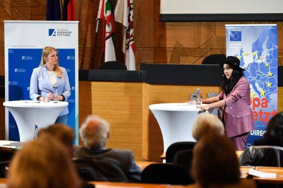 Die zunehmenden Konflikte rund um Europa und die immer wiederkehrende Diskussion um eine europäische Identität haben das Bild von „ihrem“ Europa nicht beeinträchtigt. Diana Kinnert wehrte sich dagegen, von „der einen“ jungen Generation zu sprechen. Sie selbst sei 31 Jahre alt und habe daher andere Erfahrungen mit Europa gemacht als junge Menschen, die heute 15 oder 25 sind: „Es ist etwas anderes, wenn man im Jugendalter über ein bisschen mehr oder ein bisschen weniger Bürokratie in Brüssel und Straßburg philosophiert, (...) oder sich auf ein Erasmus-Semester in der Sonne freut – im Unterschied zu denen, die aufgewachsen sind mit der Finanz- und Währungskrise, Spardiktat auf Griechen, (...) Radikalisierungen von links und rechts inmitten Europas, Streit um Beitrittskriterien, Arbeitsmigration.“ Deshalb könnten Jugendliche heute mit der Erzählung von Verlässlichkeit und Vertrauen in Europa nichts mehr anfangen, da Instanzen wegzubrechen drohten, „allen voran die großen Volksparteien“. Kinnert, die 2021 ein Buch zum Thema Einsamkeit veröffentlichte, sieht darin eine Gefährdung der Gesellschaft. Die Sehnsucht nach Klarheit sei groß.