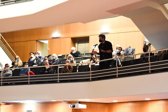 Die anschließende Diskussion stand ganz im Zeichen des russischen Angriffs auf die Ukraine. Zahlreiche Fragen an Diana Kinnert bezogen sich auf das Handeln der Europäischen Union und der Bundesregierung. Kinnert mahnte an, dass Europa heute nicht mehr automatisch Frieden bedeute. Schließlich sei das nur ein Zustand, der auch ein glücklicher Zufall sein könne: „Keiner steht hier dankbar für diesen Krieg, für den Wladimir Putin allein verantwortlich ist. Aber seit Tagen geht mit der Gedanke nicht aus dem Kopf, dass diese Situation auch zum Anlass genommen wird, endlich zu zeigen, was in den vergangenen Jahrzehnten der Krise gefehlt hat: Eindeutigkeit, Klarheit, Entschlossenheit und Stärke.“